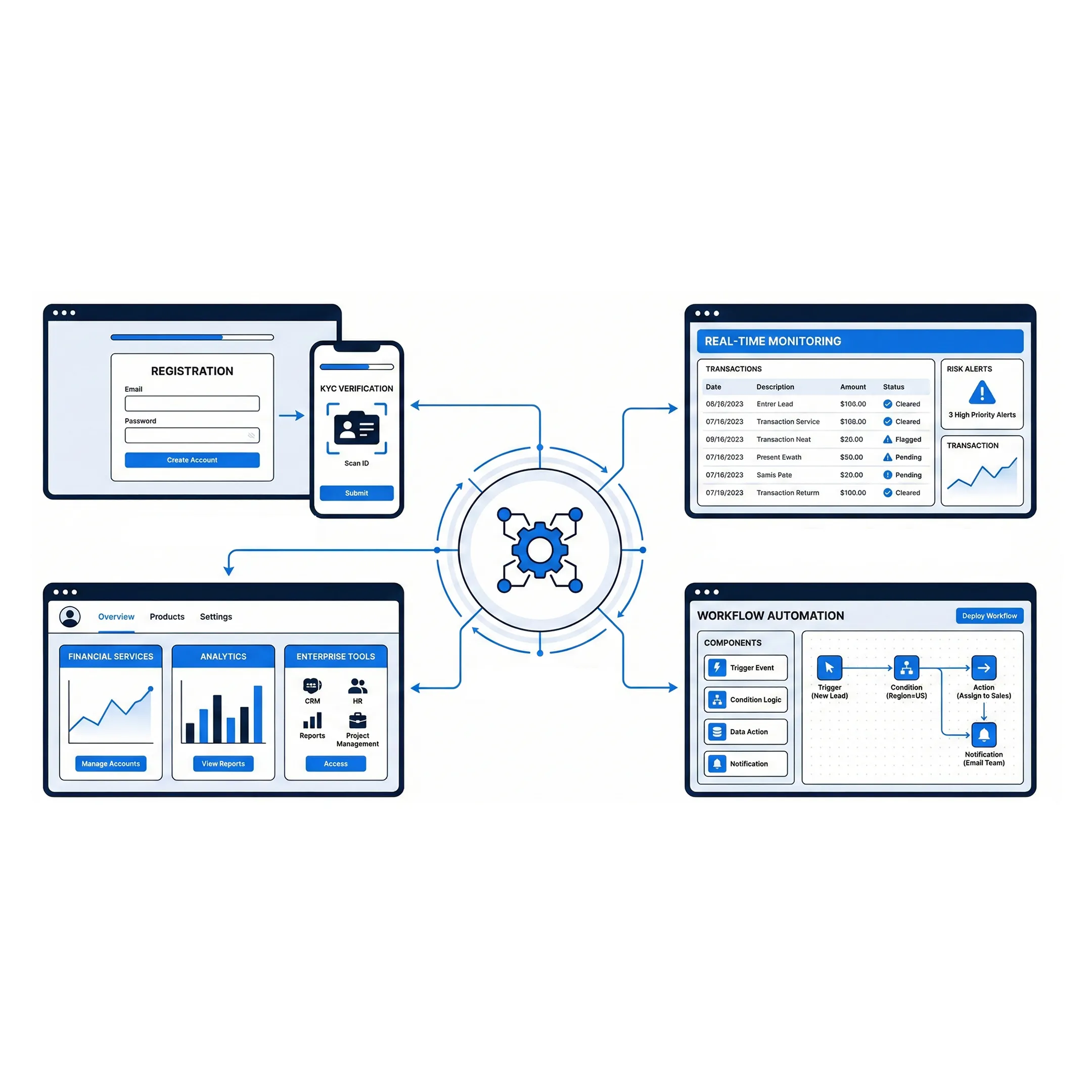 Modular low-code account origination platform featuring