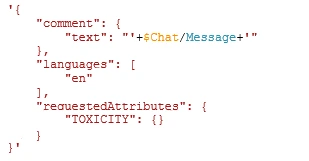 Perspective API endpoint: https://commentanalyzer.googleapis.com/v1alpha1/comments:analyze?key='+@ToxicityDetector.CONST_APIKey This is the endpoint we need to send our POST request to Perspective API with our API key. I have stored my API key in a constant variable (CONST_APIKey).